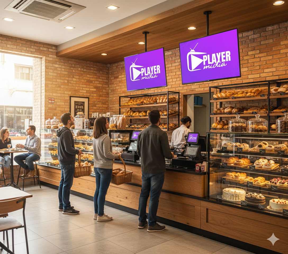 Local de parada obrigatória para aquele cafezinho logo cedo, as padarias são importantes pontos de mídia e a Tv Player Mídia tem como parceiros os principais nomes do setor, com telas espalhadas pelas lojas.